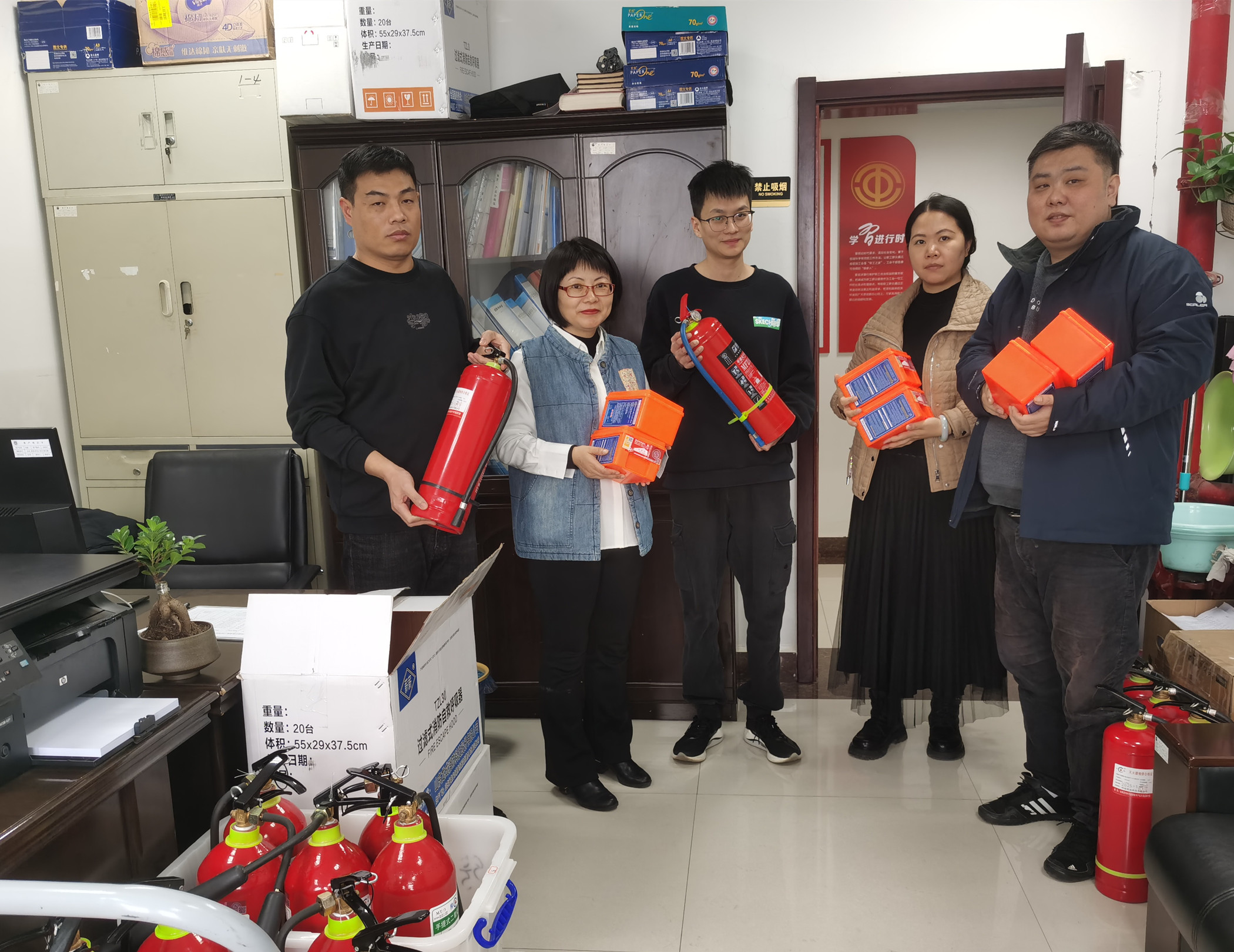 公司员工纷纷表示:“公司配发灭火器和消防自救呼吸器,让我们感受到了实实在在的关爱和保障,通过讲解,我们掌握了这些消防器材的使用方法,心里更踏实了。”