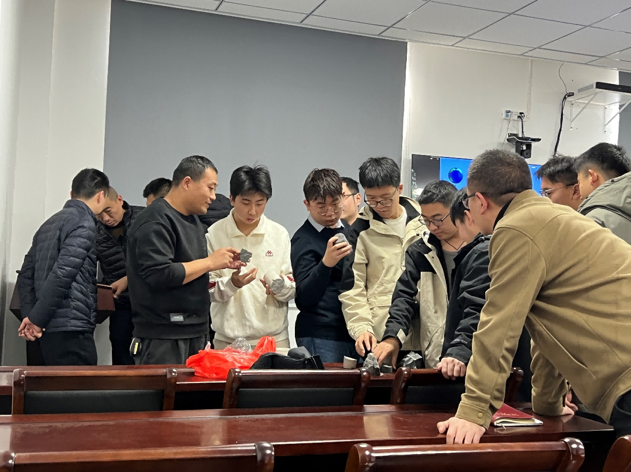 培训过程中,公司技术人员采取“理论+实操”的双轨教学模式,为学员带来系统化指导。在理论讲解阶段,讲师带领参训人员系统梳理沉积岩核心知识,细致规范岩石鉴定描述的标准格式,帮助大家完善知识体系、深化认知维度,筑牢专业理论根基;进入实操环节,讲师结合煤矿一线工作中高频接触的煤层顶底板岩性、石灰岩等典型岩种,现场演示鉴别核心要点与标准化描述方法,针对学员提出的实操难题逐一答疑解惑,切实解决了工作中的实际困惑。
