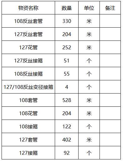 (2)采购内容:套管(详见清单)