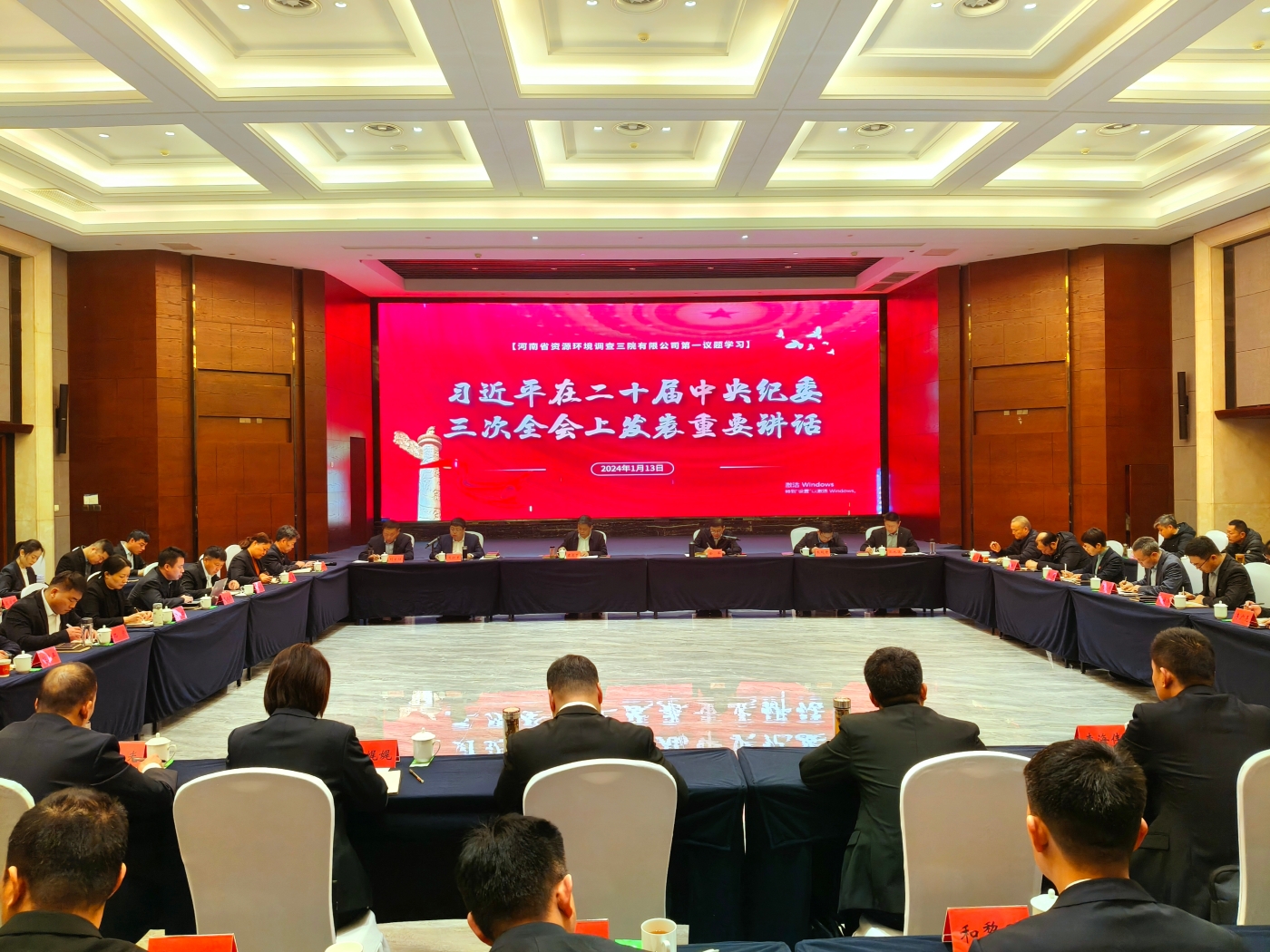 1月13日,我公司党委召开会议传达学习习近平总书记在二十届中央纪委三次全会上的重要讲话精神。党委书记、董事长袁志坚主持会议,全体中层干部参加会议。