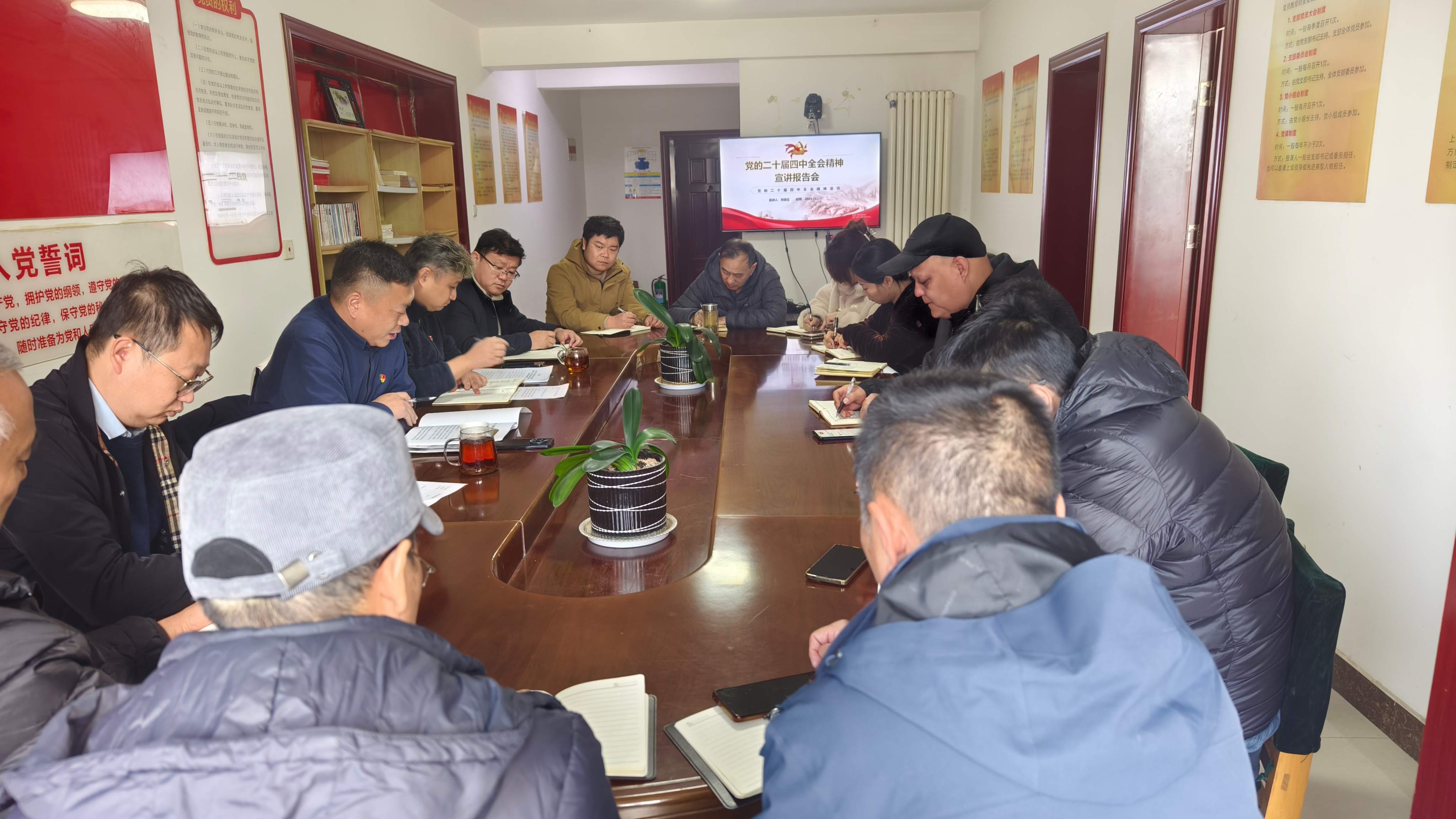 会上,刘言征围绕党的二十届四中全会精神召开的背景和重大意义,回顾“十四五”规划取得辉煌成就,重点解读了全会关于“十五五”时期经济社会发展的指导思想、主要目标以及“坚持人民至上”“加快发展新质生产力”等关键部署,深入阐释全会精神的实践内涵,让党员们清晰理解全会精神与自身岗位的紧密联系,确保学习入脑入心。