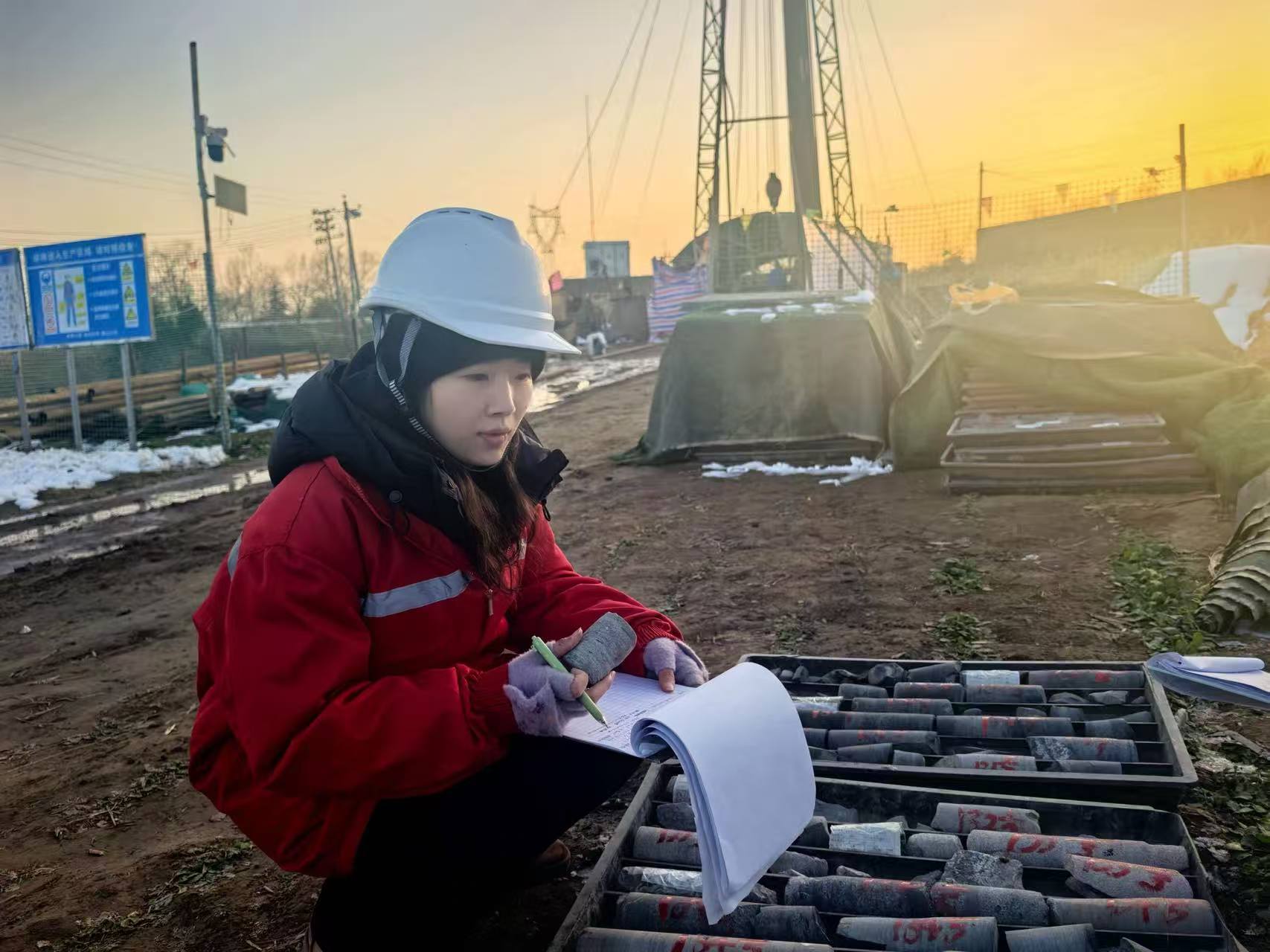匆匆忙忙,她又投身两项补勘设计项目。为了攻克难关,她抱着“从零学起”的谦逊态度,把项目相关的地质规范和资料翻来覆去;绘制图件时,她逐个核对数据,哪怕是一点位置的偏差都绝不放过。经过数日的钻研努力,她顺利完成任务。紧接着前往安阳项目部深入一线,迎接野外工作的全新挑战。在野外,她跟着前辈跑现场、岩芯鉴定,把办公室里学到的理论知识转化为实践能力,更真切感受大地深处藏着的地质密码与奇妙肌理。