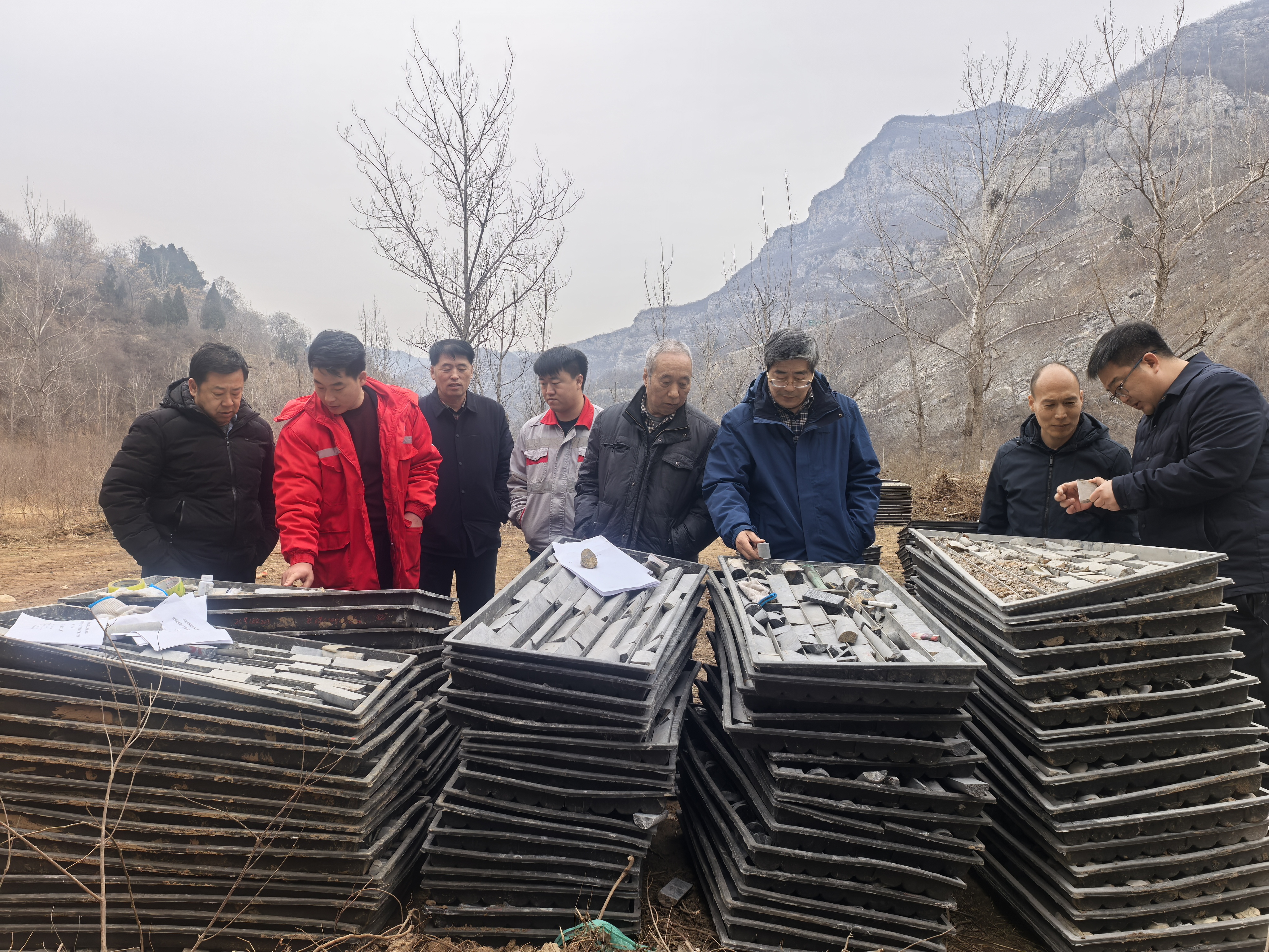 在项目验收评审会上,验收组认真听取了项目技术团队关于野外工作的详细汇报,并就关键环节进行了深入问询与答疑,对项目形成的各类原始记录、实际资料进行了抽查;会后,验收组亲赴项目现场,对钻孔孔位布置及岩心保管等情况进行了实地核查。最终验收组一致认为:该项目野外施工组织有序,全过程原始记录齐全、完整,质量管理体系运行有效,各项工作均符合相关规范和技术要求,同意通过野外验收。