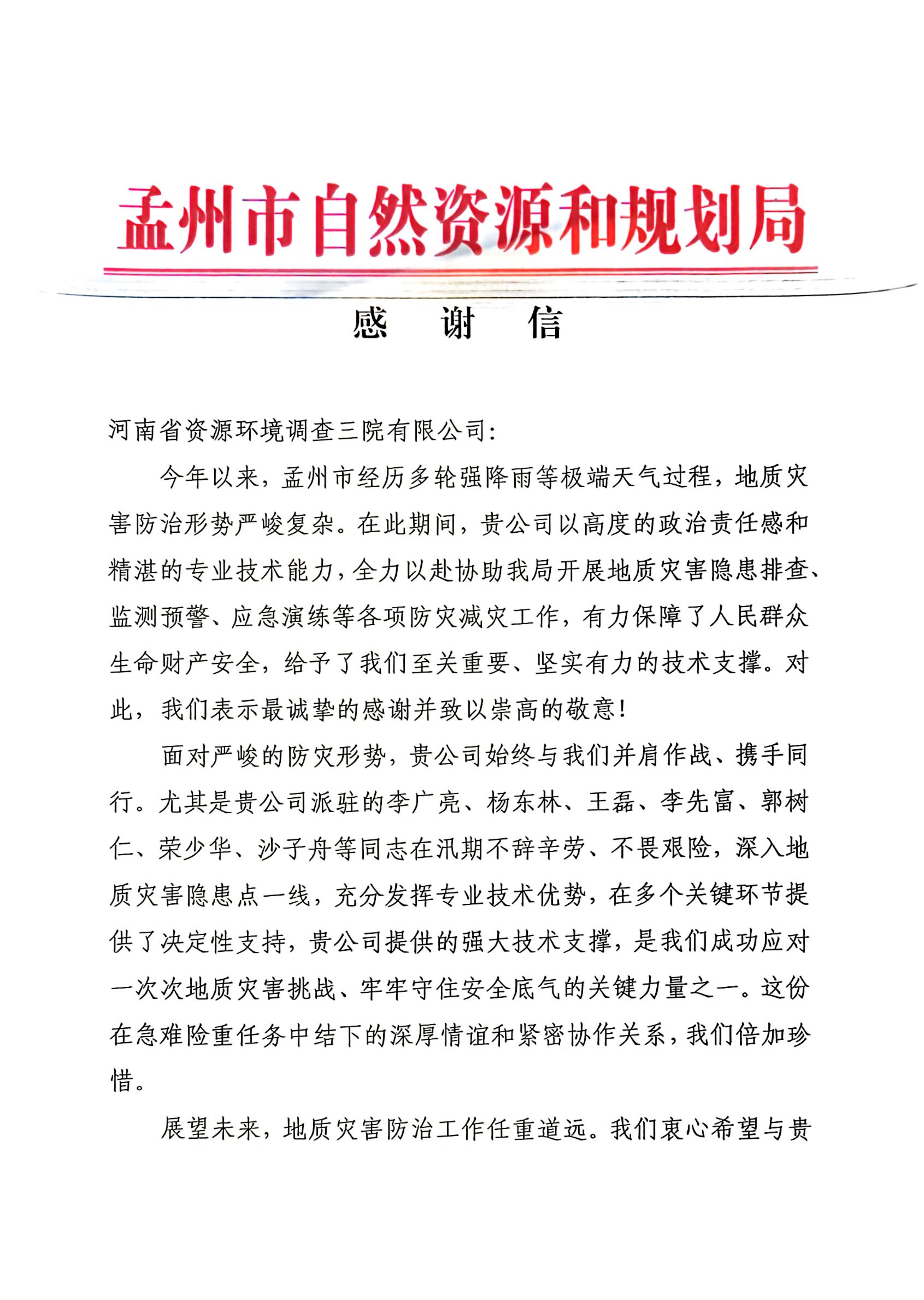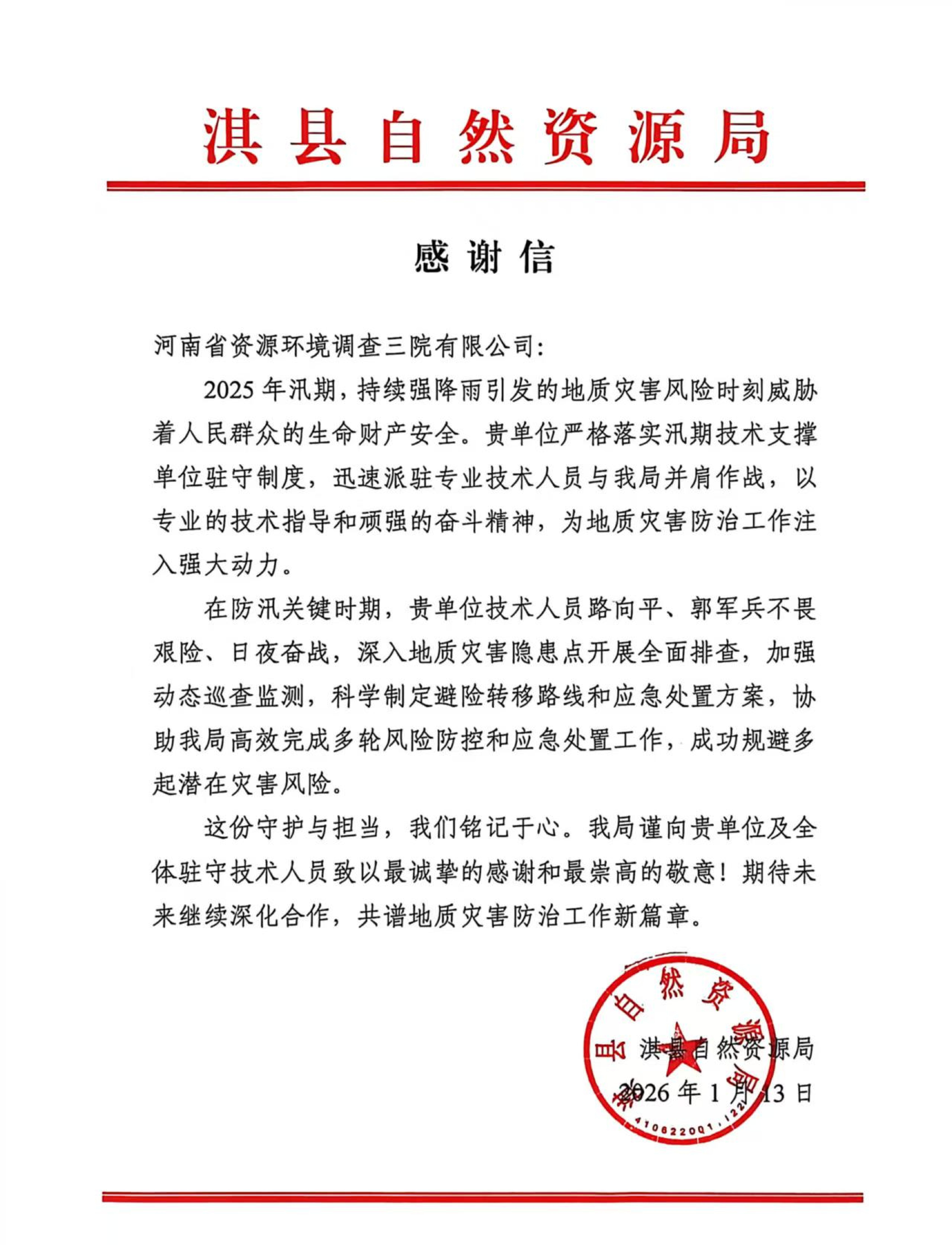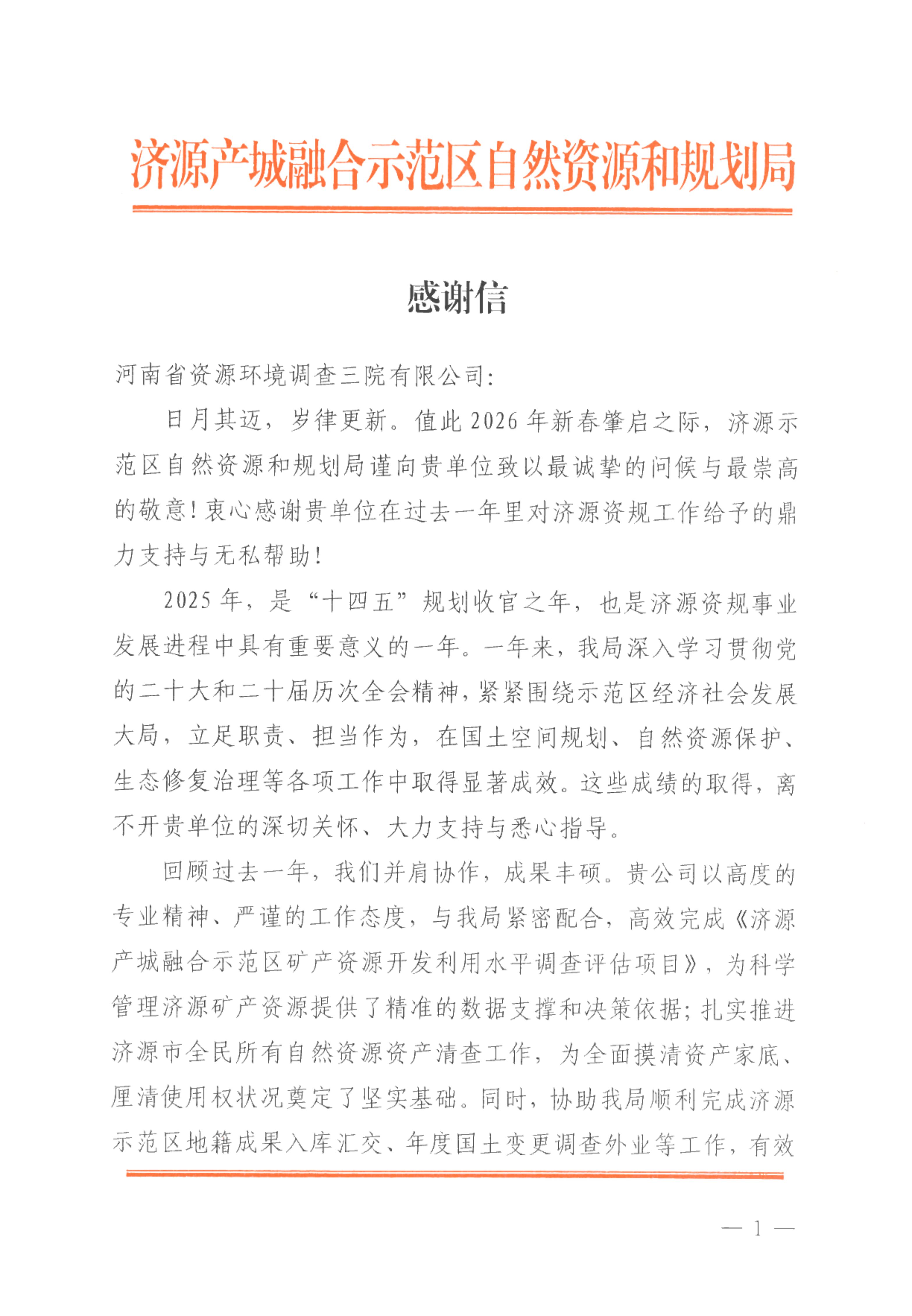 近日,喜讯传来 —— 公司接连收到各地市发来的感谢信,字里行间满含对资环三院助力地方政府、企业发展的诚挚谢意。