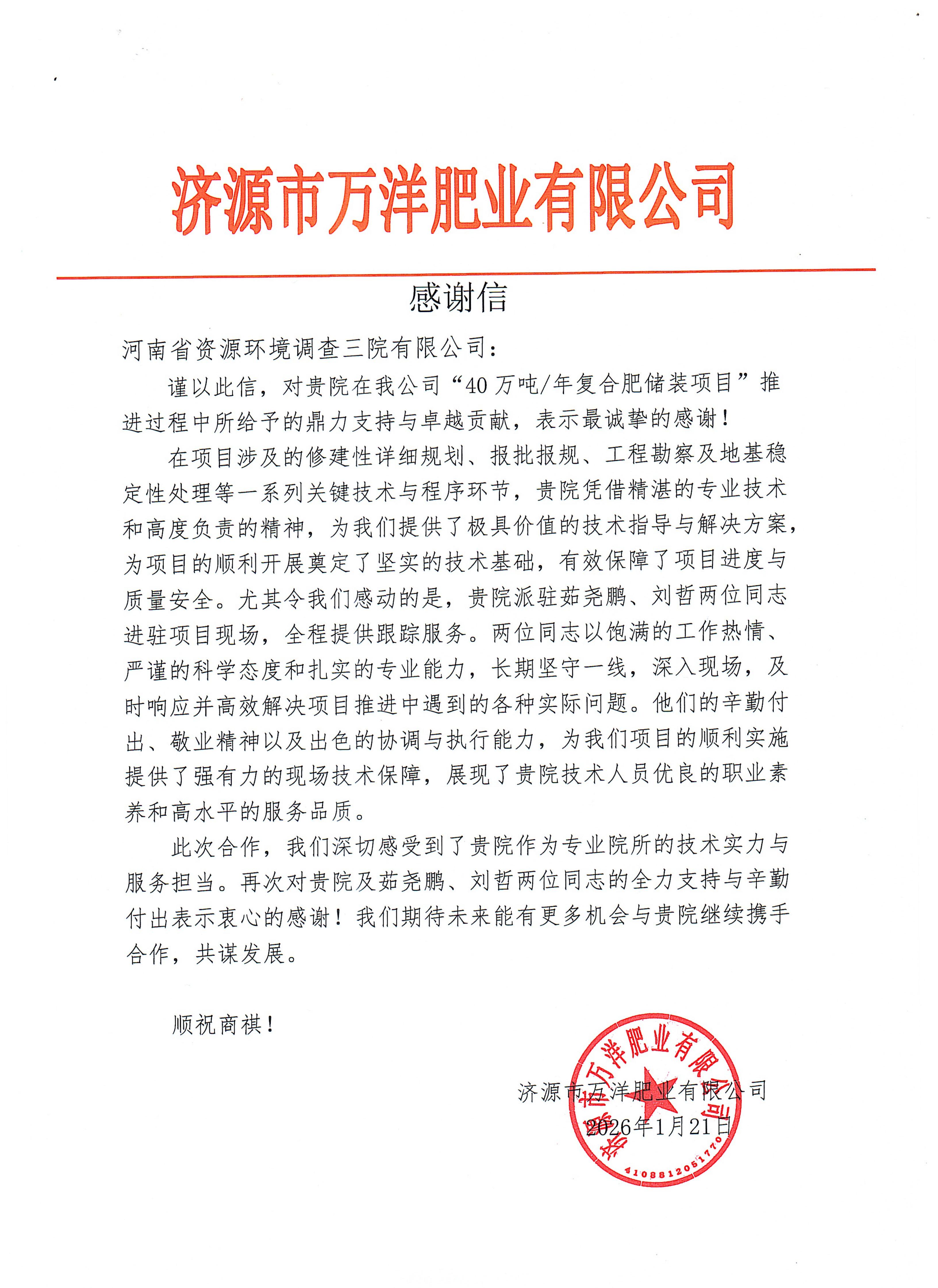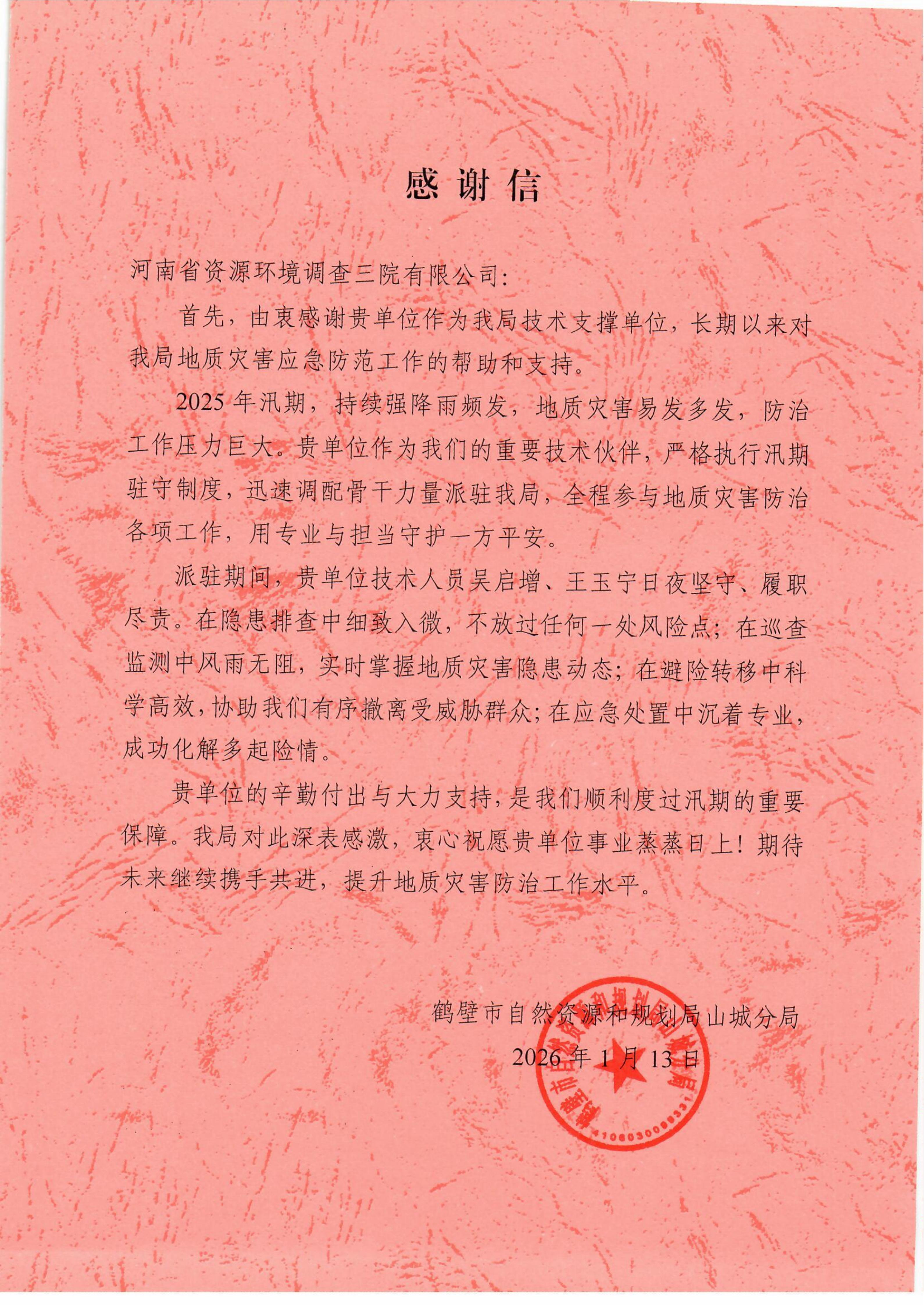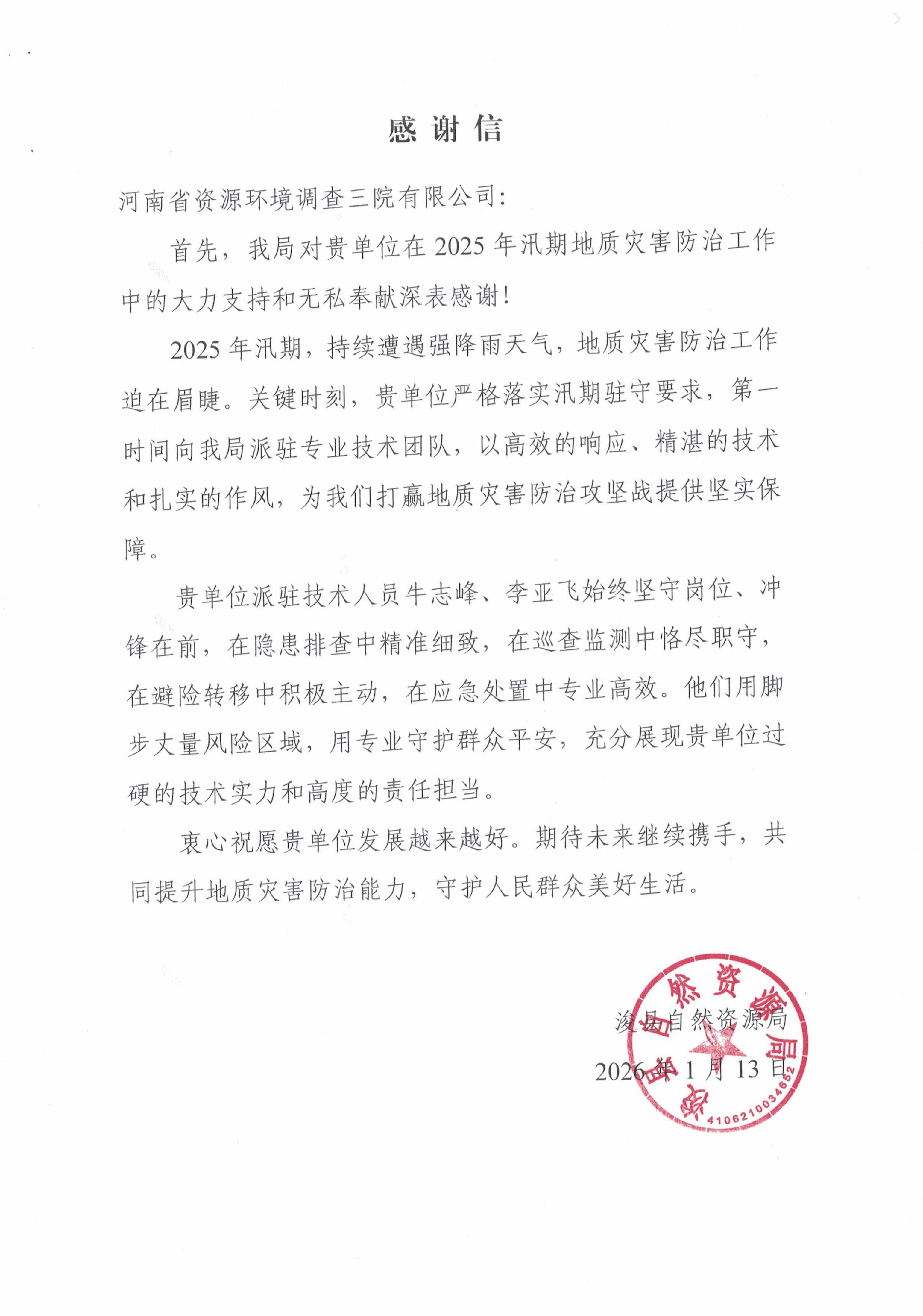 近日,喜讯传来 —— 公司接连收到各地市发来的感谢信,字里行间满含对资环三院助力地方政府、企业发展的诚挚谢意。