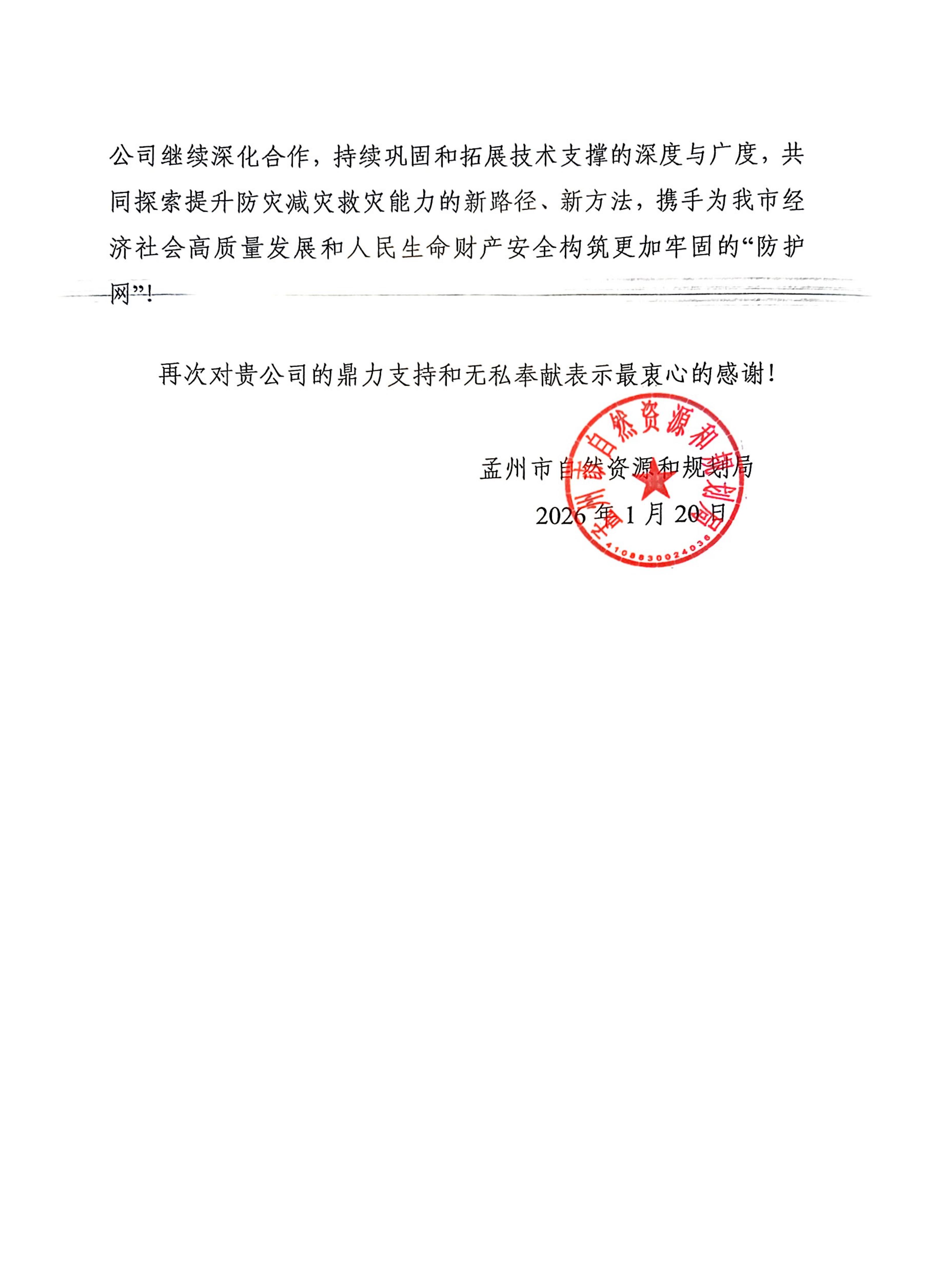 一纸信笺,一份认可。一份份赞誉不仅是对公司全年工作的高度褒奖,更凝聚成激励全体员工踔厉奋发的澎湃动力。公司上下倍感荣幸与振奋。展望前路,我们将始终以高度的责任感,持续深耕资源能源开发利用与生态环境保护领域,为各地市经济社会绿色低碳高质量发展注入坚实动能。
